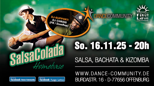 Ab 20 Uhr Salsa, Bachata & Kizomba - mit DJ Marte Chriss (DomRep/FR).